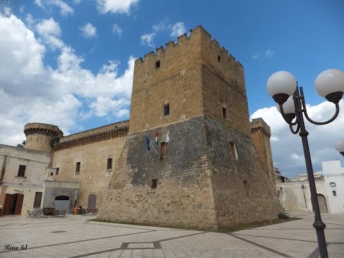 La struttura era inizialmente formata dalla sola Torre Quadrata dove, nel 1100, la popolazione locale trovò rifugio dalle continue scorribande dei saraceni. I De Falconibus acquistarono la Torre semifatiscente ed edificarono le altre quattro Torri di cui si compone. Nel corso del XIII e del XIV sec. d. C. il Castello e il feudo furono possedimenti di diverse famiglie (i Sambiasi nel 1274, F. Dell’Antognietta nel 1350, che successivamente vendette il Castello ad Ercole Petugy, il quale ricostruì la Torre Quadrata), fino al ritorno della famiglia De Falconibus. Questi, dopo la distruzione del castello nel 1388, ne avviarono la ricostruzione nel 1430, completandola nel 1435. Il Castello conserva, tra gli altri, gli stemmi dei De Falconibus, ospita mostre d’arte e conserva frammenti di decorazioni pittoriche e piccoli rilievi lapidei.